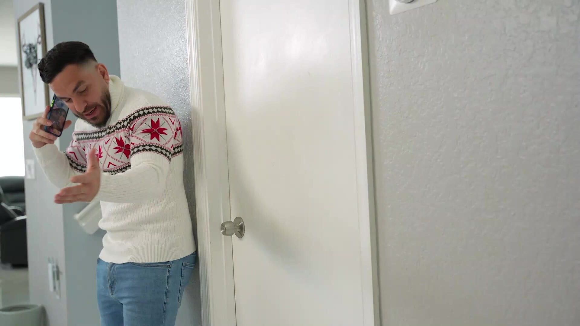Peter and Carolina have a relationship that is going strong, so Carolina wants Peter to meet her parents. He agrees, but he’s having a hard time. Not only does he have to make a good impression, but Carolina won’t let Peter fuck her raw. All Peter wants is to feel his girlfriend’s pussy with no condom. He imagines how wet he could make her and how incredible it would feel to fill her up finally. Carolina overhears Peter on the phone as he lets out his frustrations. She knows she must give Peter an unforgettable Christmas gift. Carolina lets Peter fuck her in the living room while her parents are asleep elsewhere. They have to be quiet, but Carolina can’t help but let out loud moans. They’re almost uncontrollable, as she never thought having a cock deep inside her could feel so good. The fun doesn’t stop there. Carolina wants to go all the way and make a big mess all over the living room, so she lets Peter bust a big load in her pussy.