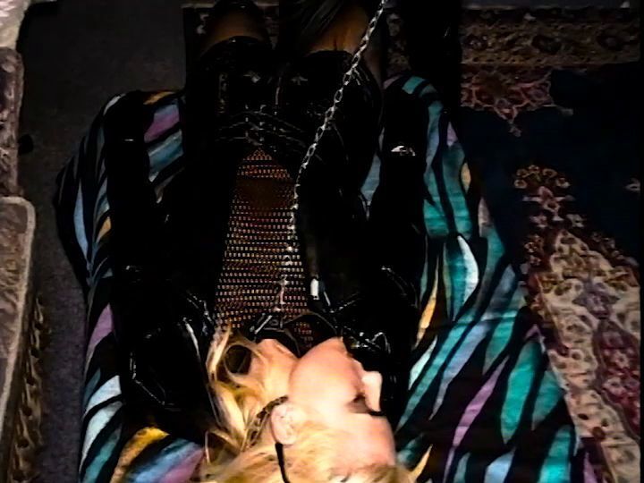 Pretty Blonde In Black Latex Enjoys Soft BDSM And His Dick