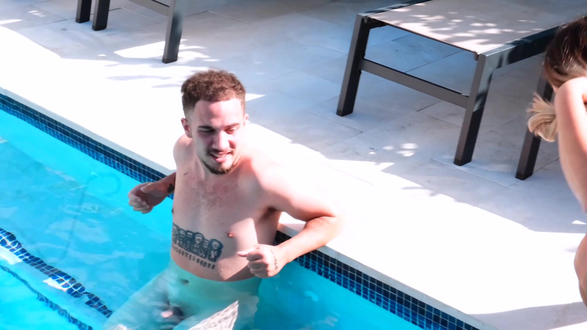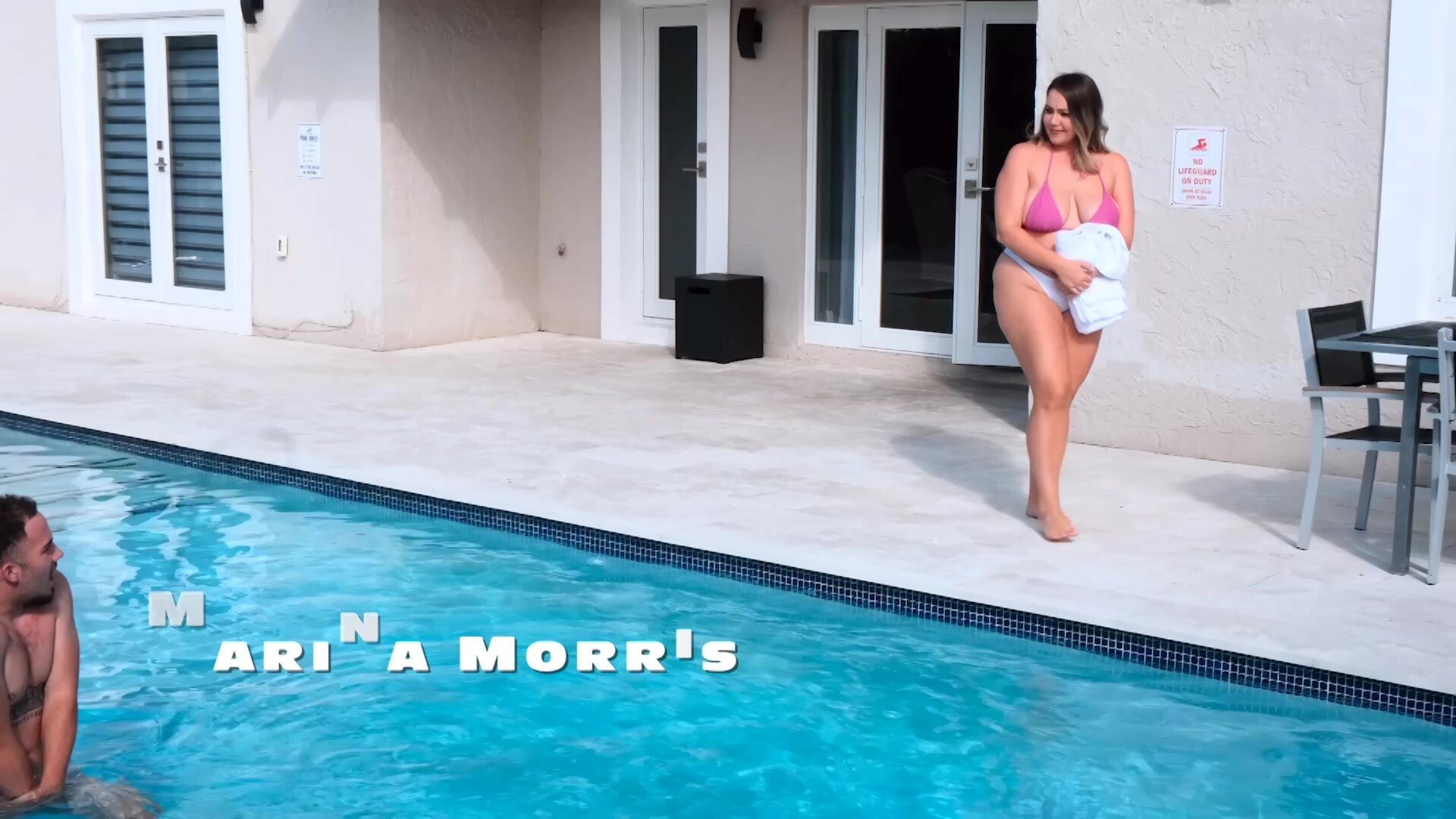 Marina Morris: Marina heads to the community pool and is surprised to find Berry swimming clothes-free. Instead of shying away, she sits next to him, eyes his junk, and suddenly swimming becomes exciting.